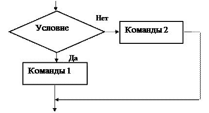 В разветвляющихся алгоритмах используются команды ветвления.