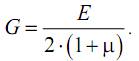 где G – коэффициент пропорциональности, который называется модулем упругости при сдвиге или модулем упругости второго рода и является константой для данного материала. Модуль сдвига может быть определен аналитически, если известны величины модуля Юнга и коэффициента Пуассона: