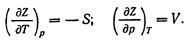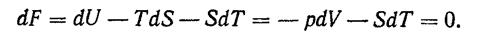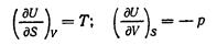 Свободная, энергия, энтальпия и внутренняя энергия являются термодинамическими потенциалами. Это следует из того, что при равновесных процессах, в которых остаются постоянными некоторые из параметров системы (т. е. при изотермических, изобарных и т. д. процессах), убывание термодинамических потенциалов равно совершаемой системой работе. При неравновесных процессах уменьшение термодинамических потенциалов больше совершаемой системой работы. Дифференцированием уравнений (2.75), (2.73), (2.74) можно получить ряд важных соотношений. Действительно, из уравнения dF == — pdV — SdT следует, что