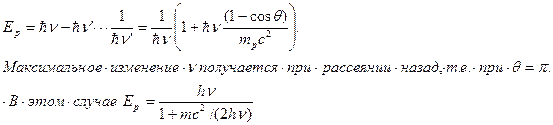 В 1930 г. из нейтрального излучения известны были лишь g-кванты. Поэтому Боте и Беккер вполне естественно предположили, что бериллиевые лучи состоят из g-квантов. В 1932 г. Ирен и Жолио Кюри повторили опыты Боте и Беккера, использовав в качестве детектора ионизационную камеру. При этом они обнаружили, что если стенки камеры имеют водородосодержащее покрытие, то наблюдается резкое усиление ионизационного тока. Ими было сделано предположение, что неизвестное излучение порождает ядра отдачи (протоны), которым соответствовала максимальная энергия Ер@ 4,5 МэВ. Появление протонов отдачи в этих опытах было непосредственно доказано путём наблюдения треков в камере Вильсона. Зная максимальную энергию протонов, на основе гипотезы Боте и Беккера о природе бериллиевого излучения супруги Кюри вычислили необходимую энергию g-квантов. Она оказалась равной Еg@48 МэВ. Действительно, если протоны появляются под действием g-квантов, то очевидно, этот процесс есть Комптон-эффект на ядрах водорода. Тогда согласно формуле (1,4) максимальная энергия выбитого протона равна