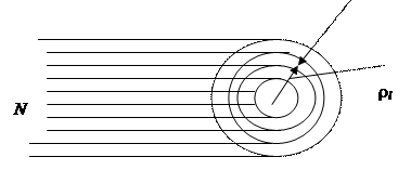 Рис. 8.2. Схематическое представление сечения рассеяния. Для того, чтобы нейтрон попал в зону действия ядерных сил, очевидно, из всех возможных l надо брать лишь те, которые соответствуют предельному параметру, равного радиусу ядра ( Отсюда геометрическое сечение s0 равно