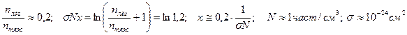 Рис. 9.11. Попадающий в верхние слои атмосферы протон с высокой энергией создаёт каскадный ливень. Состав ядерной компоненты первичных космических лучей в основном повторяет кривую распространённости элементов во вселенной. Но есть и значимые отличия. a. Космические лучи содержат ядер элементов Li, Be, B примерно в 105 раз больше, чем их содержится во Вселенной. Отсюда основная гипотеза их возникновения как результат реакции скалывания в межзвёздной пыли и газе. b. В космических лучах отношение 3Не/4Не примерно в 300 раз выше чем в естественной компоненте c. В космических лучах содержится значительно больше тяжёлых ядер. d. В первичных космических лучах до сих пор не было обнаружено антиадронов. e. Содержание электронов составляет около 1% от содержания ядер; в одном и том же интервале энергий количество позитронов составляет около 10% от количества электронов. Первые два факта можно объяснить, если предположить, что космические лучи на пути от их источника до верхних слоёв атмосферы встречают несколько граммов вещества на 1см2 их поперечного сечения. При таком количестве вещества в результате протекания ядерных реакций может возникнуть наблюдаемое распределение. Так как плотность межзвёздного вещества равна примерно 10-25г/см3, космические лучи должны путешествовать в течение 107-108 лет. Для обоснования этого заключения рассмотрим движение в галактическом пространстве однородного параллельного пучка тяжёлых космических частиц (m>>mLi). Из-за столкновения с ядрами галактического газа образуются лёгкие ядра (Li, Be, B), благодаря чему интенсивность пучка тяжёлых частиц будет убывать. Пусть s- среднее эффективное сечение столкновениятяжёлой частицы с частицей газа, при котором образуются интересующие нас лёгкие ядра. Тогда процесс ослабления интенсивности потока тяжёлых ядер будет описываться уравнением