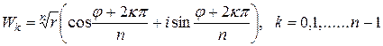 При остальных значениях к в силу периодичности синуса и косинуса новых значений для корня не получается. Таким образом, корень n -й степени из комплексного числа Пример. Вычислим