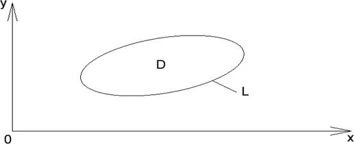 Основные понятия и определения. Пусть – функция двух переменных и D – область на плоскости XOY , ограниченная замкнутой линией L (рис