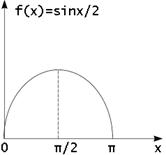 Пример 2: Непрерывная с. в. имеет плотность f(x)=(sin x)/2 при хÎ(0, p). Найти мат. ожидание, моду и медиану хm с. в. Х.