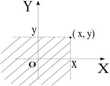 Понятие о системе случайных величин. Примеры систем с. в.: 1. Точка приземления космического аппарата (Х- широта, У- долгота) (Х, У) – система с.в. 2. Успеваемость студента характеризуется системой из n случайных величин Х1, Х2, …, Хn – оценками по пятибалльной системе. 3. и т. д. Геометрически систему (Х, У) можно изобразить совокупностью точек с координатами Х и У. Опр. Случайным вектором системы (Х, У) называется вектор, начинающийся в начале координат заканчивающийся в точке с координатами (Х,У). Аналогично: Опр. Функцией распределения (или «совместной функцией распределения») системы двух случ. величин (Х,У) называется вероятность выполнения двух неравенств: X<x; Y<y: F(x,y) = P{ X<x; Y<y}