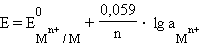 Активность твердого вещества (aтв) принимается равной единице, поэтому в случае рассматриваемого нами металлического электрода (aM) уравнение Нернста упрощается: