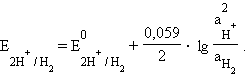 Учитывая, что для стандартного водородного электрода активности ионов H+ и газа H2 равны 1, а ΔG = –nFE, после преобразования получим уравнение Нернста для электродного процесса: