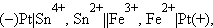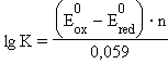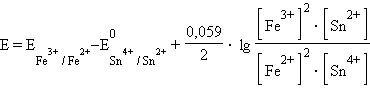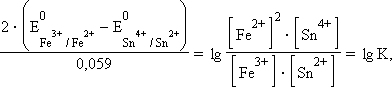 Следовательно, реакция 2Fe3+ + Sn2+ = 2Fe2+ + Sn4+ будет самопроизвольно протекать слева направо, поскольку константа равновесия ее очень велика (K = 1 ∙ 1021). В общем виде связь ЭДС с K выражается уравнением