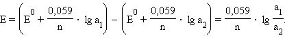 Перейдя от натуральных логарифмов к десятичным и подставив численные значения F, R и T = 298 K, получим удобную для расчетов форму уравнения Нернста: