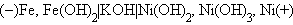 В процессе работы аккумулятора концентрация кислоты падает, а следовательно, падает и ЭДС. Когда ЭДС достигает 1,85 В, аккумулятор считается разрядившимся. При более низкой ЭДС пластины покрываются тонким слоем PbSO4 и и аккумулятор разряжается необратимо. Во избежание этого аккумулятор периодически подзаряжают. В заряженном щелочном железо-никелевом аккумуляторе анодом служит железо, катодом – гидроксид никеля (III), электролит – 20%-й раствор KOH: