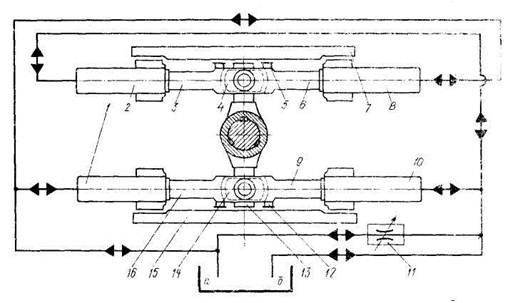 Рис. 10.9. Принципиальная схема четырехплунжерной рулевой машины: