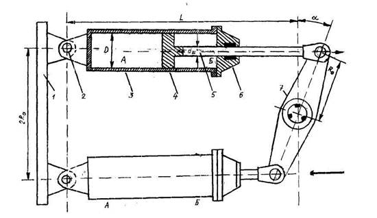Рис. 10.12. Кинематика рулевой машины с качающимися цилиндрами