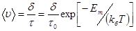 где Em - высота потенциального барьера (энергия миграции вакансии), который должен преодолеть атом, чтобы перейти из одного положения равновесия в другое; n0 ~ 1013 с-1 – собственная частота колебаний атома. При данной температуре вероятность Рm определяется значением Еm, зависящим от прочности связи атомов в решетке. Вероятность перехода атома из узла в вакансию должна быть обратно пропорциональна времени “оседлой” жизни атома (вакансии) в узле: где t0 - период собственных колебаний атома, соответствующий максимальной частоте в акустическом спектре, и по порядку величины равной 10-13 с. Чем выше температура тела, тем меньше время нахождения атома в узле. Средняя скорость, с которой вакансия движется по кристаллу Концентрация вакансий зависит от температуры