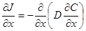 Это первый закон Фика для стационарного потока. Здесь J - плотность тока диффундирующих атомов; С - их концентрация; Ñ - оператор градиента. В общем случае, диффузия анизотропна и коэффициент диффузии D - тензор второго ранга