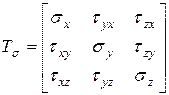Рис. 5.1 Объемное напряженное состояние (а). Главные площадки (б) Напряжения, действующие на гранях элементарного параллелепипеда в общем случае объемного напряженного состояния (рис. 5.1 б), сведем в матрицу (тензор напряжений)