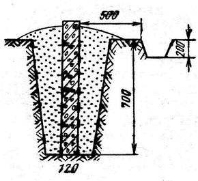 Нивелирные знаки в основном служат для обозначения и сохранения на местности точек с известными высотами. Их делят на фундаментальные, постоянные и временные. На линиях нивелирования 1 и II классов через 50-60 км вблизи уровнемерных станций, основных речных и озерных водомерных постов устанавливают фундаментальные реперы. В 50-150 м от фундаментального репера закладывают репер-спутник для лучшего отыскания и использования фундаментального репера. Постоянные нивелирные знаки устанавливают через 5-6 км на нивелирных линиях всех классов. Их делят на грунтовые скальные, стенные. При строительстве сооружений ставят строительные постоянные реперы (рисунок 41). Рисунок 41 – Бетонный столб