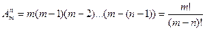 Определение. Если составлять из т различных элементов группы по n элементов в каждой, располагая взятые элементы в различном порядке. Получившиеся при этом комбинации называются размещениями из т элементов по п.