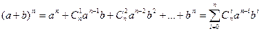 В дальнейшем будет получена формула бинома Ньютона с помощью приемов дифференциального исчисления. Бином Ньютона – это формула, выражающая выражение (a + b)n в виде многочлена. Эта формула имеет вид:
