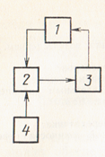 _____________________________________________________________ Рис.3.1. структурная схема автогенератора 1-цепь ОС; 2-усилительный элемент; 3-колебательный контур; 4-источник питания. устройством, которое создает колебания радиочастоты с помощью колебательного контура и элементов обратной связи. А так как колебания в таком генераторе возникают автоматически, сразу после включения источников питания, то он называется автогенератором (рис. 3.1).