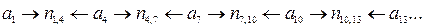 Звідсіля робимо висновок, що спотворені ті інформаційні символи, номери позицій яких є спільними в кожній парі сум, тобто Із цього прикладу можна зробити і побічний висновок: значення λ визначає не лише крок додавання, а і глибину перемежування, тобто кількість окремих незалежних ланцюгів коду. Дійсно, при λ = 3 маємо три незалежних ланцюги: