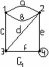 Рисунок 3.3.3 Его матрица смежности будет матрица А= маршрутов из 1 в 3 длины 1 нет (записывают: маршрута (1 А2 = А3 = Последовательность вершин маршрута можно получить, исследуя элементы матриц А, А2, А3 и т.д., или, в случае простых графов, по их рисунку. Наиболее наглядный способ состоит в использовании модифицированной матрицы смежности, в которой вместо единиц записаны названия соответствующих рёбер (дуг). В примере 3.3.4 модифицированная матрица смежности будет иметь вид:
