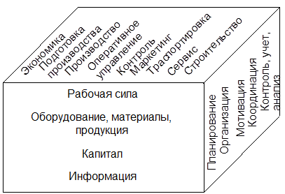 Если вспомнить модель производственного процесса (рис.2), то последнюю схему можно расширить до трехмерной (рис. 14).