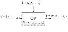 Состояние объекта определяется рядом параметров, характеризующих протекание процессов внутри объекта (возмущения – нагрузки, помехи), а также внешнее воздействие на него устройств управления и окружающей среды. Некоторые из этих параметров являются неконтролируемыми (неуправляемыми), другие – контролируемыми (управляемыми). Эти параметры показаны на рис. 1.4, где F = (f 1, f 2,… f k) – вектор неконтролируемых возмущений, U = (u 1, u 2,… u s) – вектор управляющих воздействий, определяемых отклонением поведения объекта от заданного, X = (x 1, x 2,…, x n) – вектор состояния объекта управления, а Y = (y 1, y 2,… y m) – вектор управляемых величин. Если объект характеризуется одной управляющей и одной управляемой величинами, т.е. векторы U и Y имеют по одной координате, то объект называется простым или односвязным (скалярным). При наличии нескольких взаимосвязанных координат векторов U и Y объект называется многосвязным.