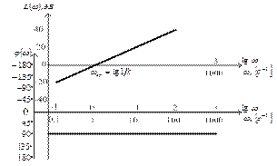 Рис. 3.47. Логарифмические частотная и фазовая характеристики интегрирующего звена