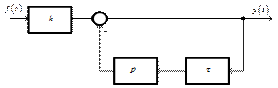 где k – коэффициент передачи (усиления), T – постоянная времени (инерционности), измеряемая в секундах. Выражение для передаточной функции может быть получено на основе представления структурной операторной схемы апериодического звена с помощью элементарных звеньев. Представим уравнение (3.8) в виде