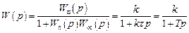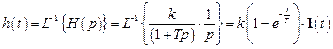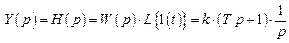 Выше было отмечено, что временные характеристики соединения звеньев с обратной связью удобнее получать с помощью обратного преобразования Лапласа эквивалентной передаточной функции. Операторное изображение переходной функции апериодического звена, полученное на основе выражения (3.10), имеет вид