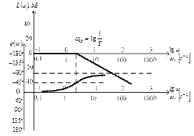 Рис. 3.54. Логарифмические амплитудная и фазовая характеристики апериодического звена