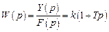 Передаточная функция параллельного соединения звеньев, как было показано выше, равна сумме передаточных функций звеньев. Поэтому передаточная функция форсирующего звена равна