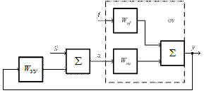 и установившееся значение переменной выхода будет в точности равно заданию. Необходимо только, чтобы коэффициент усиления устройства управления был равен величине, обратно пропорциональной коэффициенту усиления объекта по каналу управления. Параллельная компенсация воздействия. Она является эффективным средством обеспечения инвариантности объекта к основному возмущению, если это возмущение может быть измерено. Ее реализация показана на рис. 4.24.