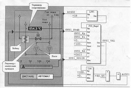 Рассмотрим пример проекта автоматизированной системы подогрева воды (рис.35).