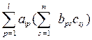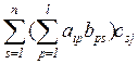 Определение 1. Пусть A =(aij) – матрица размера m×n над полем P, Определение 2. Пусть A =(aij) – матрица размера m×n над полем P, B =(bij) - матрица размера n×k над полем P. Произведением матриц А и В называется матрица С =(сij) размера m×k над полем P, в которой элемент сij равен скалярному произведению i- й строки матрицы А на j -й столбец матрицы B, т.е. сij=AiBj =(ai1 ... ain)⋅ Лемма 1. Пусть А, В, С - матрицы над полем Р. Если существует произведение(АВ) С,то существует и произведение А (ВС),причем (АВ) С=А (ВС). Доказательство. Пусть существует произведение (АВ) С. Тогда существуют матрицы АВ размера m×n и матрица С размера n×k. Это означает, что существуют матрицы А размера m×l и В размера l×n. Таким образом, существуют матрицы А, В и С соответственно размера m×l, l×n и n×k. Тогда существует произведение BC размера l×k и поэтому существует произведение А (ВС). Покажем, что (AB) C=A (BC). Пусть (АВ) С= (xij), А (ВС) = (yij), i= xij=RiCj= yij=AiTj = Таким образом, xij=yij, i= Лемма 2. Пусть A, B, C – матрицы над полем P следующих размеров: А и В – размера m×n, С – размера n×k. Тогда(А+В) С=АС+ВС. Доказательство. Пусть (А+В) С= (xij), АС+ВС= (yij), i= xij= (A+B) iСj= Следовательно, (А+В) С=АС+ВС. Лемма доказана. Определение 3. Пусть A - матрица размера m×n над полем P. Транспонированием матрицы А называется операция замены в матрице А i -й строки на i -й столбец, i= Пример 1. Если A = Лемма 3. Если произведение AB существует, то существует произведение tB tA, причем t (AB) = tB tA. Лемма 4. Если А – матрица размера m × n над полем Р, то АЕn=EnA=A. Доказательство осуществляется непосредственной проверкой. Через Mn(P) обозначается множество всех квадратных матриц n -го порядка над полем P. Замечание. Из свойств операций над матрицами следует, что Mn(P) - ассоциативное кольцо с единицей. Отметим, что умножение матриц некоммутативно (см. примеры на практических занятиях). Лемма 5. Пусть А и В – матрицы над полем P,