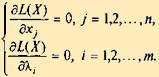 которая называется функцией Лагранжа. X, — постоянные множители (множители Лагранжа). Отметим, что множителям Лагранжа можно придать экономический смысл. Если f (x1, x2,..., xn) — доход, соответствующий плану X = (x1, x2,..., xn), а функция φi (x1, x2,..., xn) — издержки i-го ресурса, соответствующие этому плану, то X, — цена (оценка) i-го ресурса, характеризующая изменение экстремального значения целевой функции в зависимости от изменения размера i-го ресурса (маргинальная оценка). L(Х) — функция n + m переменных (x1, x2,..., xn, λ1, λ2,..., λn). Определение стационарных точек этой функции приводит к решению системы уравнений