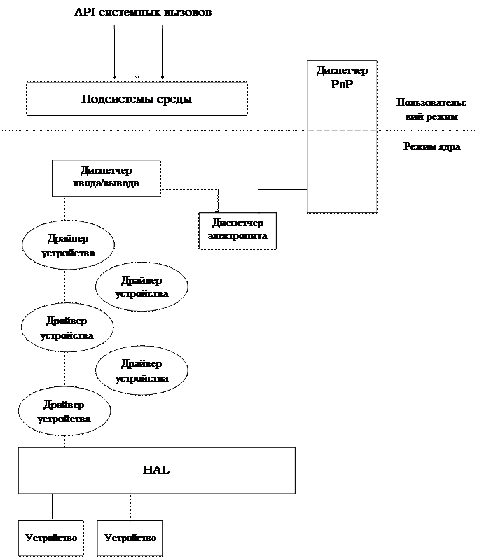 Рис.6.5. Компоненты поддержки ввода/вывода в ОС Windows XP