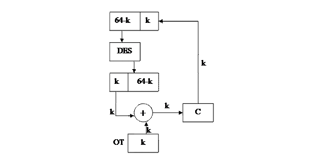 Файл, подлежащий шифрованию (расшифрованию), считывается последовательными блоками длиной k битов (k = 1…64). Быстродействующий режим.