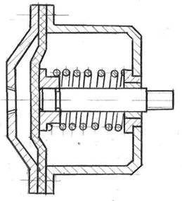 4) Основной недостаток небольшой ход штока и непостоянство развиваемого усилия. 5) Корпус камеры отливается из серого чугуна или штампуется из малоуглеродистых сталей, так же корпуса диафрагменных двигателей изготавливаются из алюминиевых сплавов АЛ-9В, АЛ 10В. На практике применяются как тарельчатые, так и плоские диафрагмы. Тарельчатые диафрагмы прессуются в пресс-формах. Сама диафрагма состоит из четырёх слоев ткани типа «бельтинг», покрытая с двух сторон маслостойкой резиной. Толщина диафрагмы 6...7мм. Плоские диафрагмы изготавливаются из листовой технической резины с тканевой прокладкой толщиной до 3 мм. Могут вырезаться так же из транспортёрной ленты толщиной до 4....6мм. Время срабатывания пневмопривода может быть определено по формуле