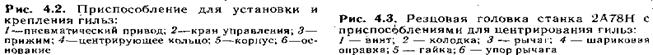 Обработка под ремонтный размер широко практикуется при восстановлении изношенных поверхностей цилиндров или гильз цилиндров автомобильных двигателей (табл. 4.3). Технологический процесс включает в себя расточную и хонинговальную операции. Расточка проводится на вертикальных алмазно-расточных станках моделей 278, 278Н, 2А78Н и многошпиндельных полуавтоматах. Базовыми поверхностями при установке блока для растачивания цилиндров служат нижняя привалочная плоскость и фаска в верхней части цилиндра. При установке гильз на расточку базовыми поверхностями служат наружный чисто обработанный поясок и верхний торец гильзы. Блок цилиндров устанавливают не посредственно на столе расточного станка, для установки гильзы используется приспособление (рис. 4.2), которое крепится на столе. Эксцентриситет осей шпинделя и цилиндра не должен превышать 0,03 мм. Для предварительной центровки приспособления или блока цилиндров применяют шариковую оправку 4 (рис. 4.3), а погрешность центровки проверяют индикаторным центро-искателем. Центрирование приспособления ведется по посадочному отверстию под гильзу, а блока цилиндров — по неизношенной поверхности растачиваемого цилиндра на глубине 3 — 4 мм от верхнего торца. Оправку в шпиндель устанавливают так, чтобы шаровой конец ее находился от диаметрально противоположной стороны резцовой головки на расстоянии в миллиметрах: