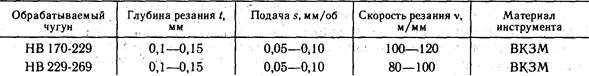где zx — припуск на хонингование равный 0.03 — 0,05 мм. Затем определяют глубину резания t с учетом рекомендации табл. 4.4 и назначают число проходов iвыбирают нормативную подачу s (см. табл. 4.4) и уточняют ее по паспорту станка sф; принимают нормативную скорость резания v и рассчитывают частоту вращения шпинделя: