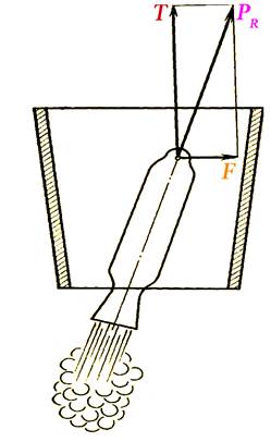 За допомогою повороту ракетного двигуна (рис. 4.24) змінюється напрям його тяги PR. Вектор тяги PR можна розкласти на дві складові: паралельну Т и перпендикулярну F напряму руху ракети. Сила F створює неврівноважений момент щодо центра маси ракети і може бути використана як сила, що керує, для зміни траєкторії польоту ракети.