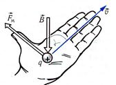 На следующем рисунке показано направление силы Лоренца для положительно заряженной частицы, движущейся со скоростью