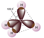 Наприклад: Метан має тетраедричну орієнтацію, електронні пари мають максимальний кут 109.5°