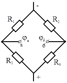 Такие схемы применяются в измерительной технике для точных измерений сопротивлений компенсационным методом. Если в одну из диагоналей установить измеряемое сопротивление, то баланс моста нарушается. Измеряемое сопротивление компенсируют подбором сопротивления противоположной диагонали до выполнения условия Uвых=jа - jб = 0. При этом на точность измерений не оказывают влияние температурные условия и нестабильность источника питания.