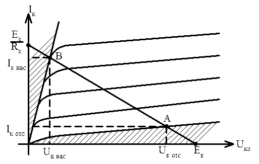 Рис. 3.3. Режимы работы транзисторного ключа.