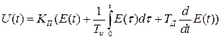 где K, Tи, – коэффициент усиления и постоянная времени. Достоинства: Позволяет комбинировать астатизм И - закона, и быстродействие П - закона. Недостатки: Иногда не может обеспечить необходимое быстродействие. 3) Пропорционально - интегрально - дифференциальный закон (ПИД – закон).