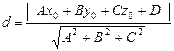 Расстояние от точки до плоскости. Пусть задана точка точку М(х0,у0,z0) и плоскость Q, заданная уравнением Ах+Ву+Сz+D=0. Расстояние d от точки М0 до плоскости Q находится по формуле: