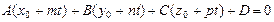 Подставив эти выражения для х,у,z в уравнение плоскости,получаем уравнение